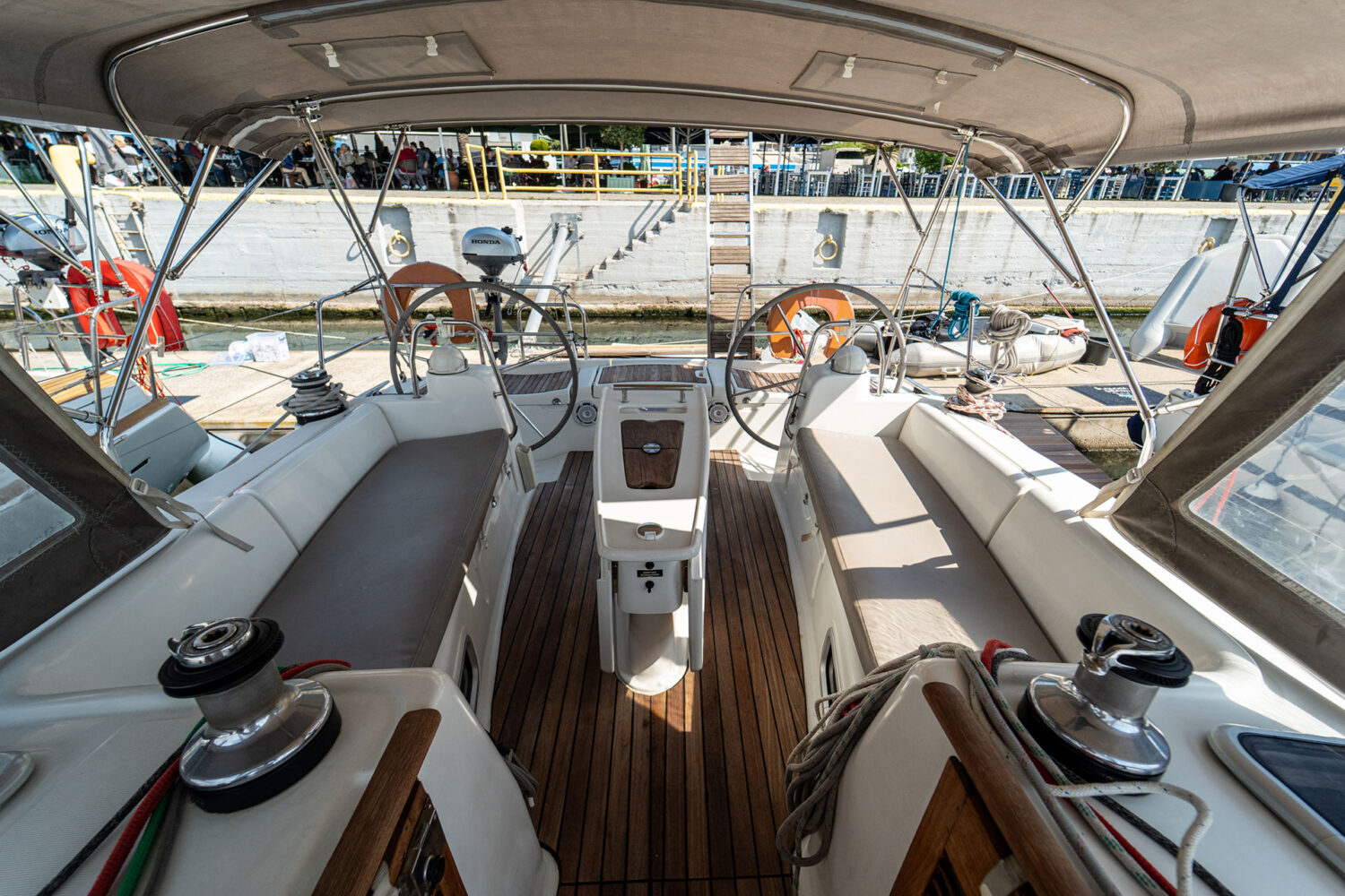 ⊗ For bare boat charter there is a Mandatory guarantee deposit 2500€, which is returned after disembarkation